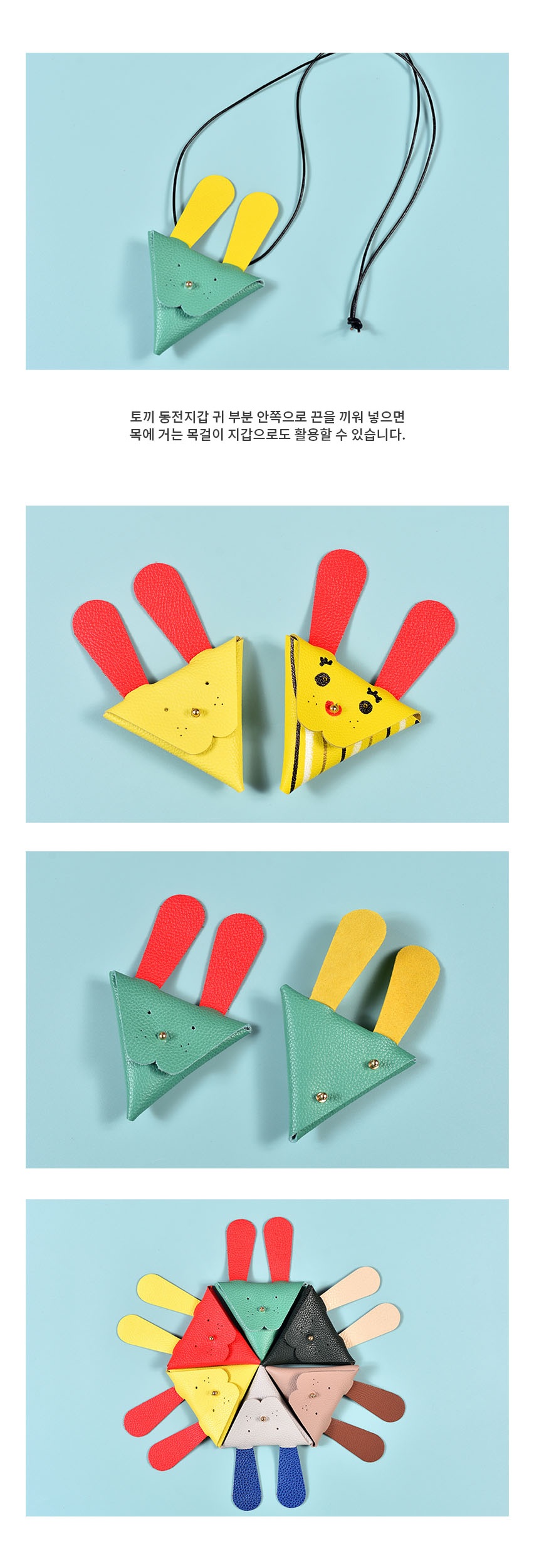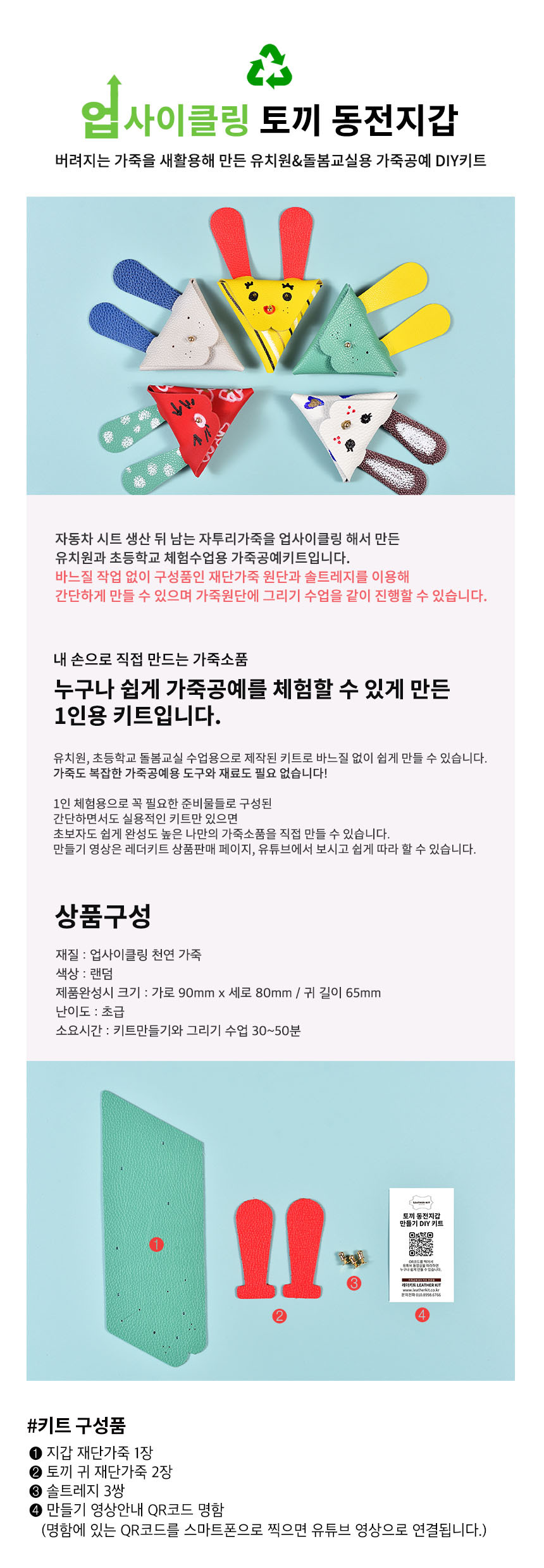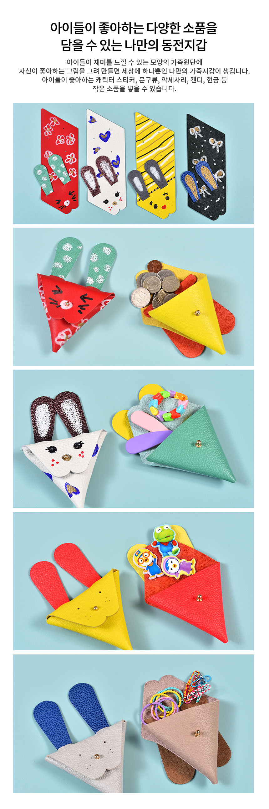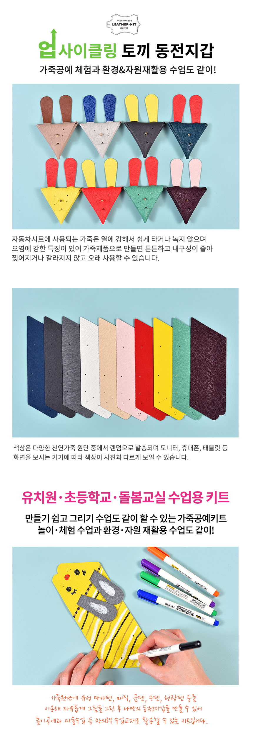 상품명[레더키트] 토끼 동전지갑 만들기 10개(환경교육 업사이클링 천연소가죽 공예DIY키트) 색상 랜덤