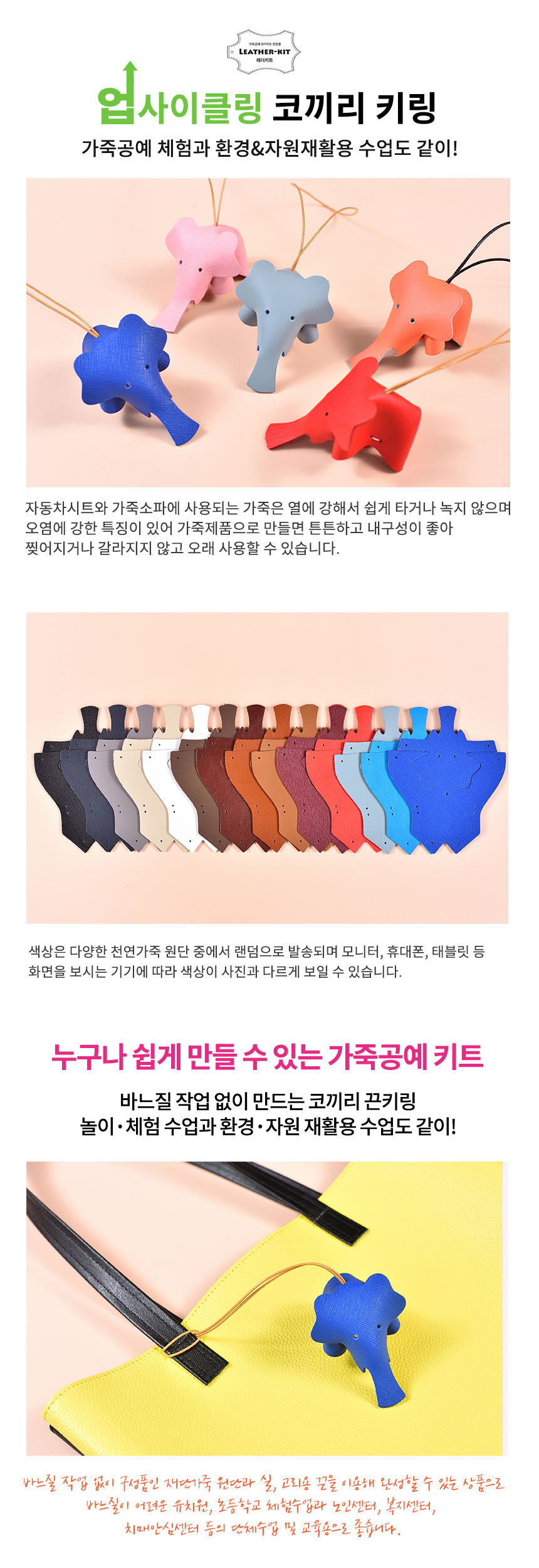 [레더키트] 코끼리키링 만들기 10개(환경교육 업사이클링 천연소가죽 공예DIY키트) 색상 랜덤