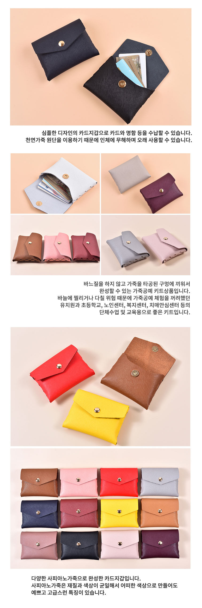 [레더키트] 펀칭 카드지갑 만들기 10개(천연사피아노가죽 공예DIY키트) 색상 랜덤