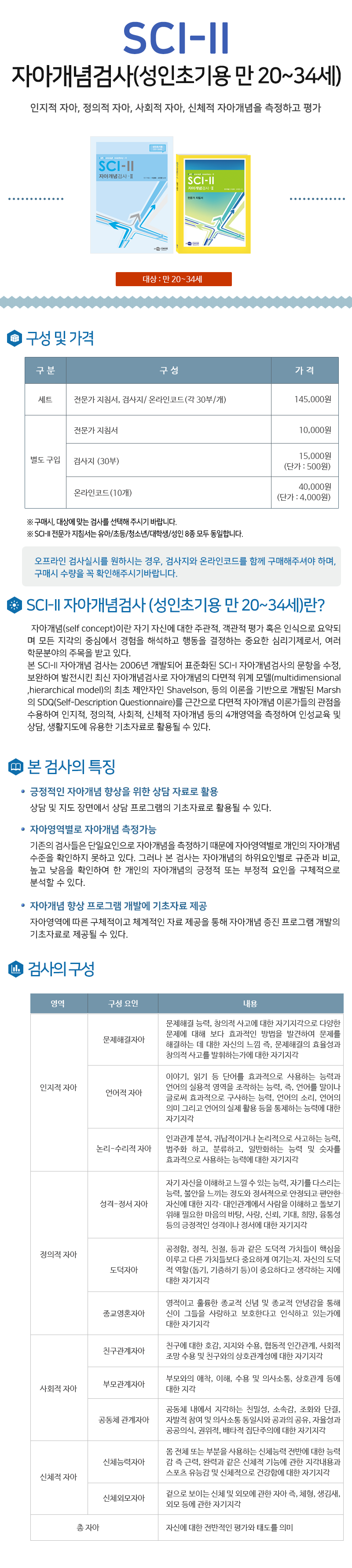상품명SCI-II 자아개념검사 - 성인초기용 만 20~34 세(B 레벨)