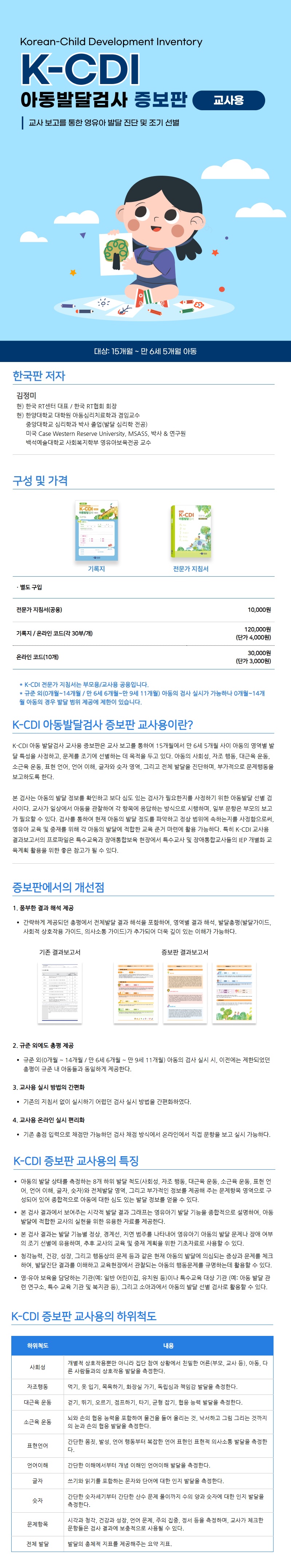 - 검사 문항 동일 - 채점방식 변경: 총점 입력형 → 답안 선택형 (온라인 실시 가능) - 전문가 지침서: 채점 방법에 대한 내용 수정