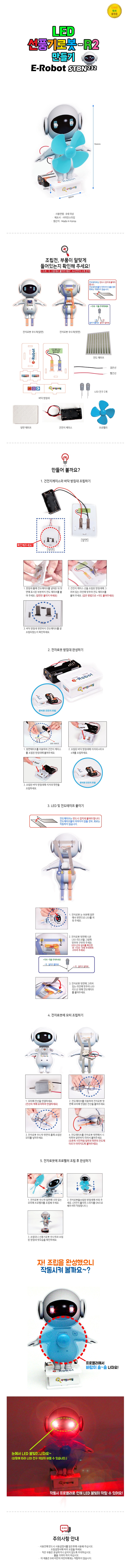 상품명[E-BOT] LED 선풍기 로봇 R-2 10개 / 전도테이프 이용 전자키트