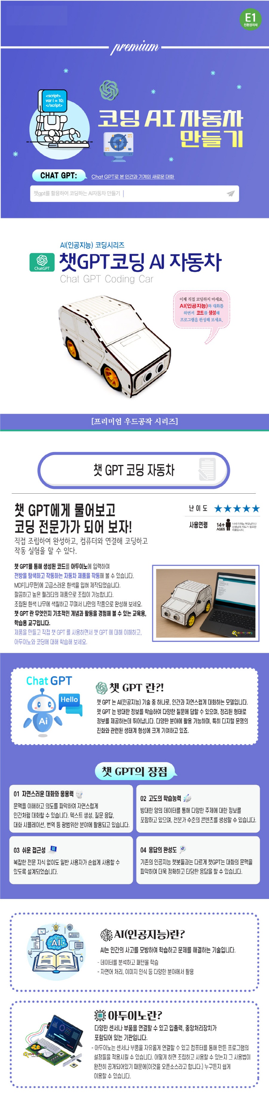 상품명[프리미엄 우드공작 시리즈] 챗GPT 코딩 AI 자동차 만들기