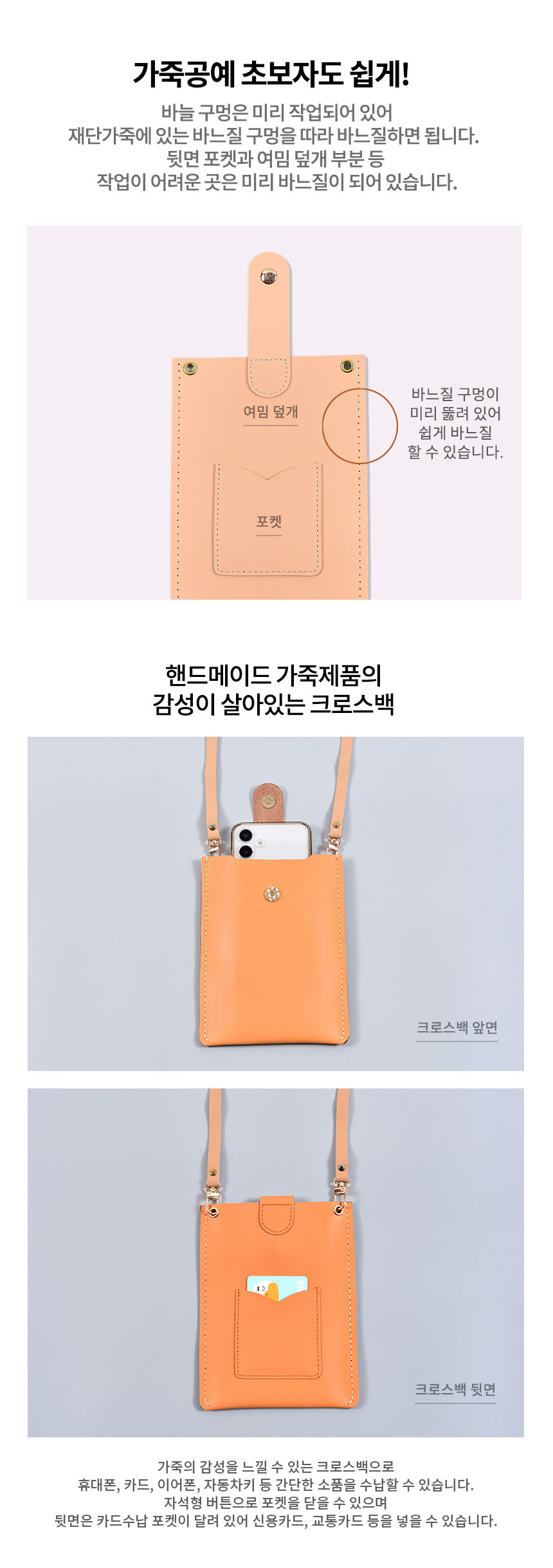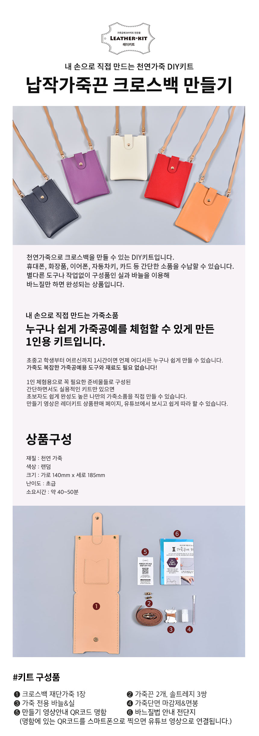 [레더키트] 납작크로스백 만들기 10개(가죽공예) 색상 랜덤