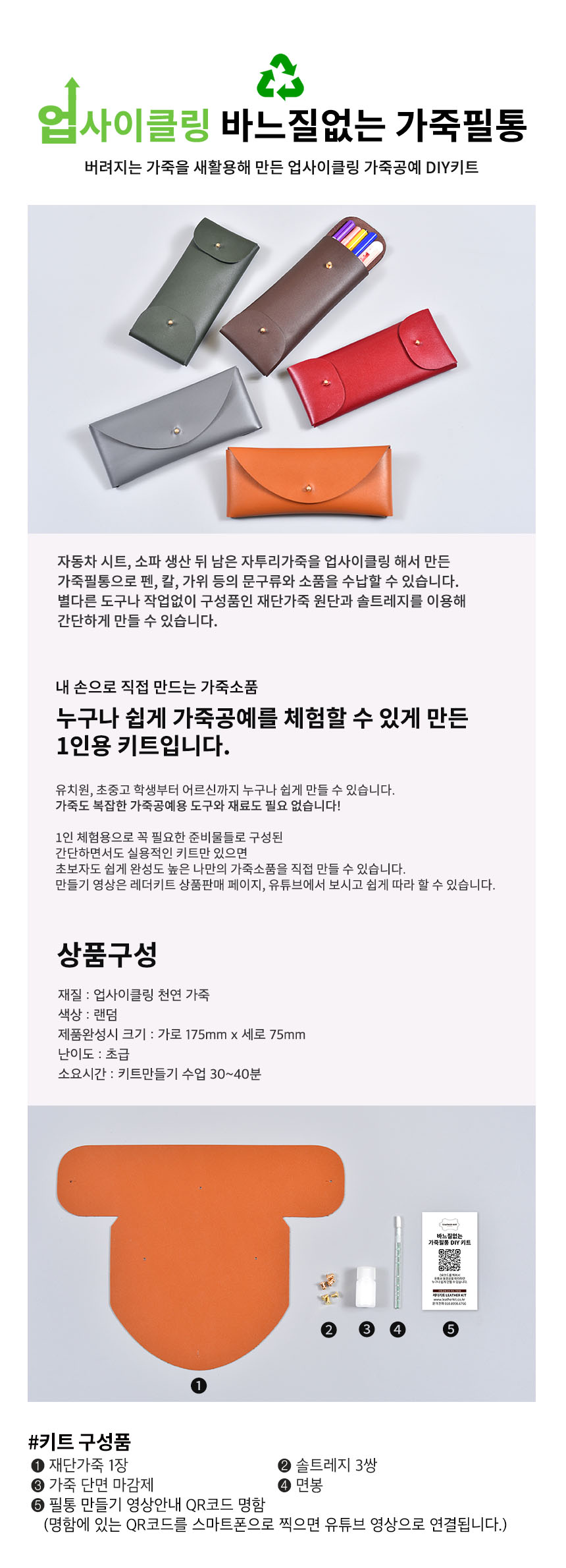 [레더키트] 바느질없는 필통만들기 10개(천연가죽공예DIY) 색상 랜덤