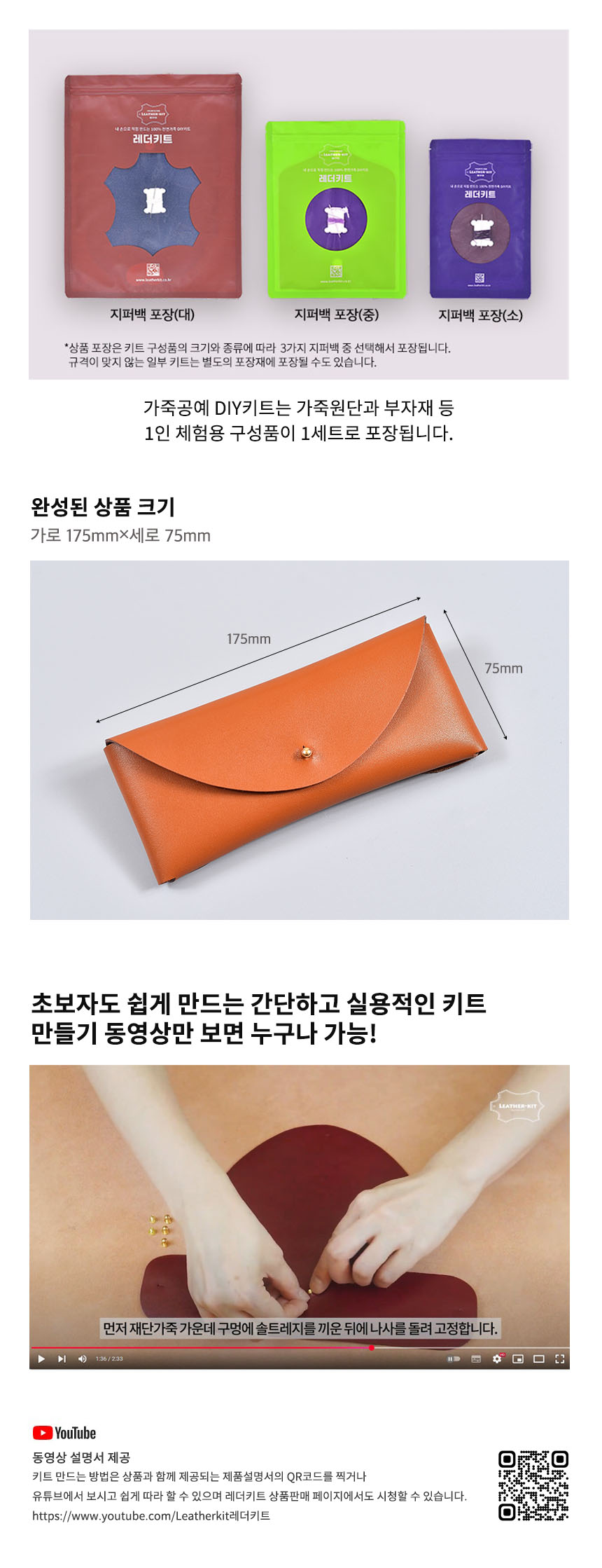 상품명[레더키트] 바느질없는 필통만들기 10개(천연가죽공예DIY) 색상 랜덤