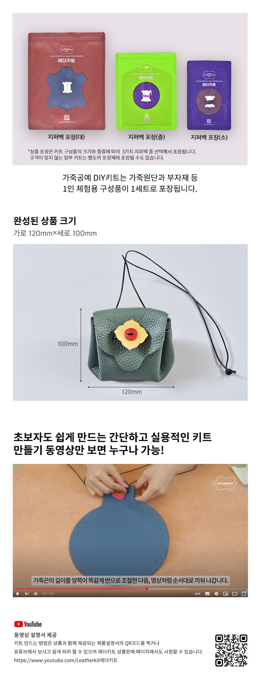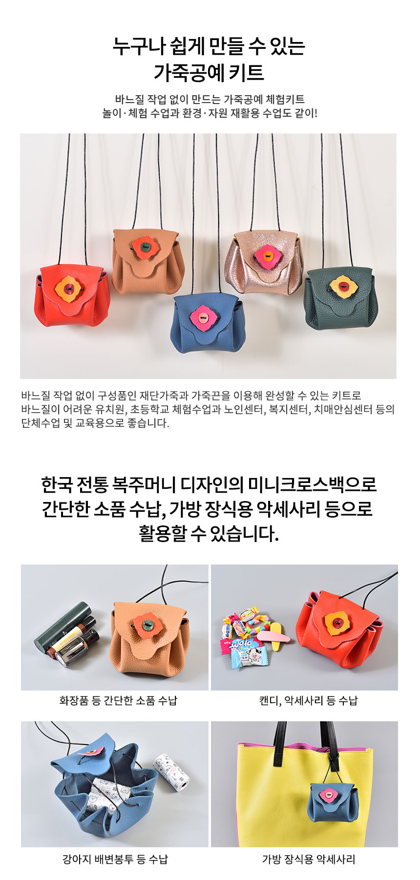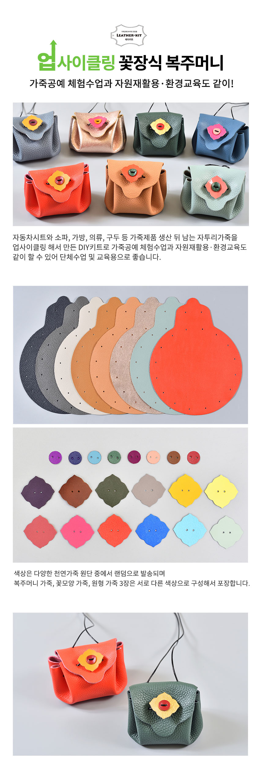 [레더키트] 꽃장식 복주머니 미니크로스백 만들기 10개(천연가죽공예) 색상 랜덤